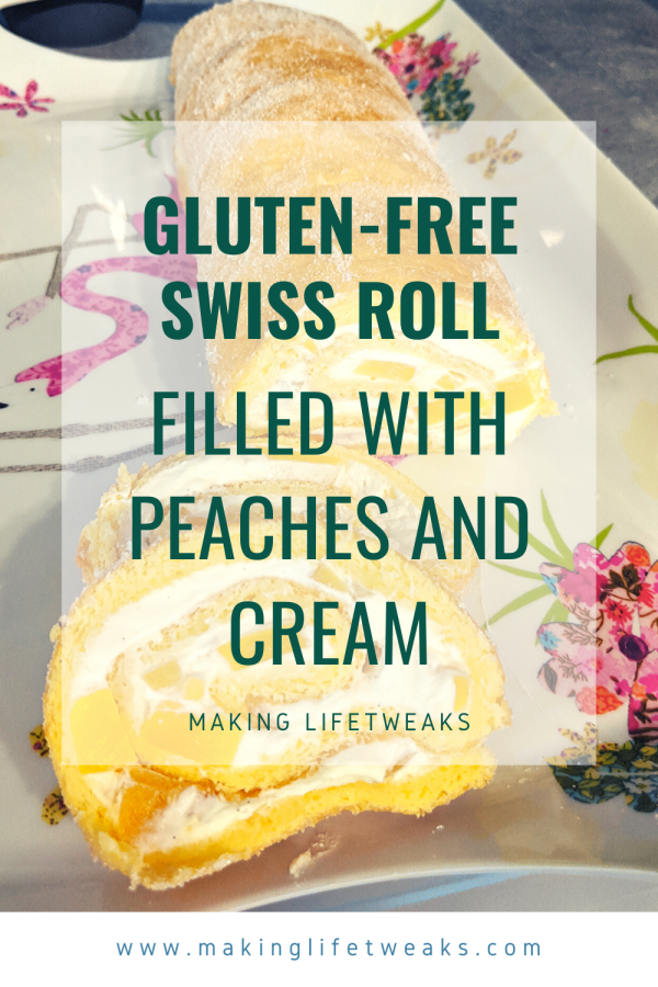 The Swiss roll is a nice cake in the sense that when you have the basics down, you can change up the fillings according to the season and special diets easily and you can also coat and decorate which any way you like to make the roll into a cake or individual plated desserts. To this one I chose tinned peaches and whipping cream because during winter months at least here in the UK the imported berries aren’t maybe the best they could be and I’d prefer to use what’s in season. It’s also a combination that I have learned to love since I was a child.