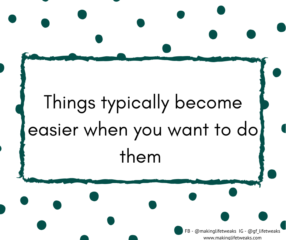 If the thing you want to get done isn’t really scary, but you avoid it because you feel it’s boring or tedious or the amount of work to be done intimidates you, try distracting yourself by making the thing you need to be doing feel more pleasant. Exercising is way easier with good music and you might listen to a podcast or an audiobook when you are washing or cleaning up. I used to hate folding away the washing but started to watch my favourite shows while doing so (literally propping my phone on the dryer…) to distract me from the thing. What I have found is that I didn’t like folding the washing because it reminded me how ‘lazy’ I had been not having done it sooner. Focusing on something else has helped me get past that. I did some self-work to clear those negative thoughts and am happy to say I can fold away clothes without thinking about it much, as one probably should!